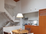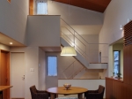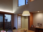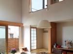 2階のリビングは吹き抜けから東西の光を取り入れ、建込んだ町中でありながら、開放感のある風通しの良い空間を確保しています。