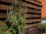 外観では土壁の風合いのある左官壁と板張りの壁との柔らかい素材感によって3階建ての建物のボリューム感を和らげています。建物と連続して伸びる板塀は高さを抑えて塀超しに通りの人と声をかわす事が出来ます。荒く貼った板のあいだからは庭の植栽が顔を覗かせ、通りに彩りを添えます。