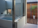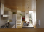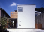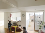 庭を使った遊びや、緑の風景など外部と積極的に交流を持つ家でありながらも、プライバシーを確保するために、道路側はあえて閉鎖的な表情として、中庭を囲むコートハウスの配置としました。そして、家のどこからでも北側の緑が見通せるプランとすることで、常に外を感じることの出来る開放感に満ちた住宅となっています。