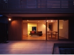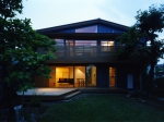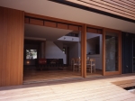 広々とした庭を母屋と共有出来る恵まれた条件を生かすために1階をリビングとして、引き込める木製サッシュや広いデッキを設けて、庭に向かって開放的な作りとしました。