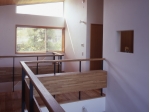 2階の吹き抜け回りは単なる廊下ではなく、手摺に本棚を組み込んで、明るく風通しの良いギャラリーとなっています。