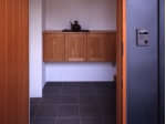 玄関脇には音楽が趣味のご主人のための完全防音のスタジオが用意されています。外観で木製の壁になっている部分です。
