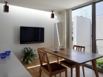 限られた面積の中で、常識的な住宅として快適な日常生活が過ごせる最低限の機能に加え、音楽を楽しむ個室と、敷地内に駐車スペースが必要とされました。さらに近接する周辺家屋からプライバシーの守られた、落ち着いて過ごせる内部空間を確保することも重要な課題でした。