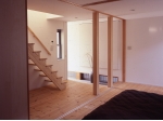 1階を寝室と浴室、2階にリビングとキッチン、ロフトを子供室としています。