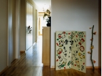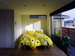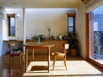 1階親世帯の間取りは家相を中心として決定されました。建具を全て引き戸とすることや、生活動線に行き止まりを作らないようにすることで、日常的な使いやすさとともに、通風、採光、バリアフリーに配慮しています。建てかえる前と同じように庭への広がりを感じる、落ち着いた接地感の強い空間です。