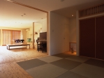 実家のお母様がいらっしゃる間は座敷のふすまを閉めれば、ダイニングを共有する2世帯住宅として機能します。そのためゲスト用に独立した浴室を用意しています。